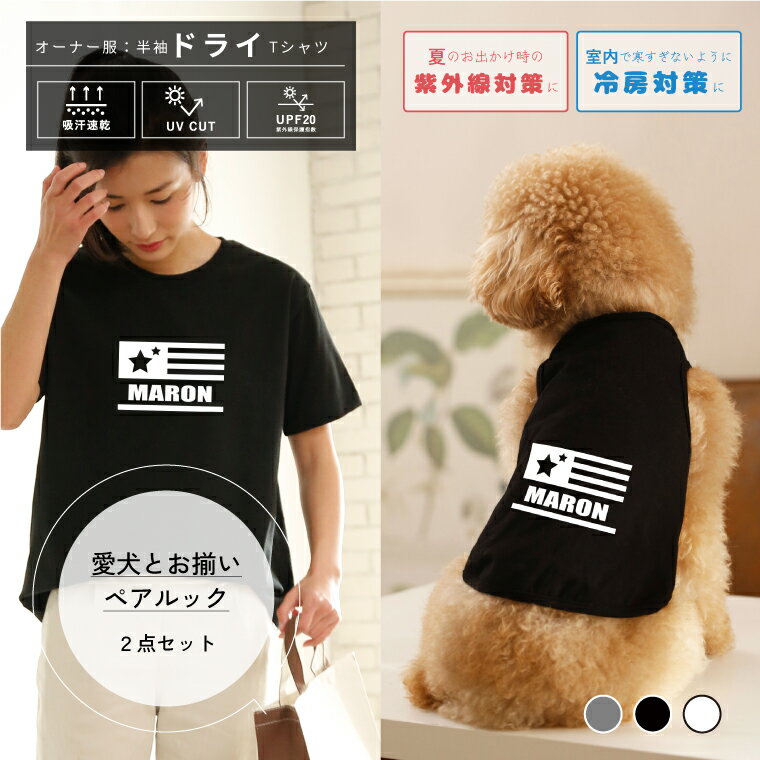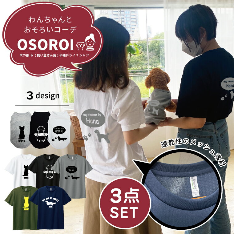[送料無料]おそろいコーデ「OSOROI」 タンクトップ(犬服)1枚&半袖ドライTシャツ(オーナー服)2枚 犬種が選べる ワンちゃんシルエット 吸汗速乾 UVカット 犬とペアルック3点セット 犬の服 ドッグウェア 犬とお揃い 名入れ 名前入り ギフト プレゼント