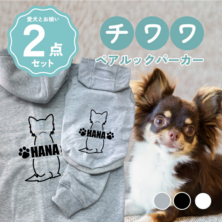 チワワ CHIHUAHUA ペット 犬グッズ 犬雑貨 ドッグ いぬ 小型犬 DOG 名入れ 名前入り ネーム入り name dog 犬雑貨 犬グッズ 犬服 ドッグウェア 犬の服 犬 ペット 服 ウェア 洋服 S M L XL 2L 3L 4L 日本製 春 夏 秋 冬 オリジナルドッグウェア 犬とお揃い ペアルック ペア おそろい お揃い 誕生日 オリジナル オーダーメイド おしゃれ シンプル バースデー プレゼント ギフト 御祝い お祝い 贈り物 御祝 お祝 記念日 記念品 バレンタインデー ホワイトデー 成人式 七五三 母の日 父の日 敬老の日 クリスマス 入学 卒業 入園 卒園 お誕生日 内祝い お土産 手土産 御礼 結婚祝い 出産祝い 年賀 転職【 重 要 】裏起毛ジップパーカースペック変更 現行モデルの在庫終了次第、順次新仕様のジップパーカーへ切り替えいたします。 ▼新仕様のジップパーカー 2025年11月28日時点(旧)ブラック LLサイズ → (新)ブラック XLサイズ(旧)グレー LLサイズ → (新)グレー XLサイズ 犬の服の実寸サイズは型紙用紙にてご確認いただけます。▼詳しくはこちらからご確認ください型紙用紙PDFデータ 【 犬の服 】商品詳細 ウェアカラー グレーブラックホワイト サイズ Mサイズ(首周り25cm×胴周り35cm×着丈26cm×前丈17cm)Lサイズ(首周り30cm×胴周り40cm×着丈29cm×前丈20cm)XLサイズ(首周り34cm×胴周り45cm×着丈33cm×前丈23cm)2Lサイズ(首周り38cm×胴周り50cm×着丈37cm×前丈26.5cm)3Lサイズ(首周り42cm×胴周り57.5cm×着丈41cm×前丈30cm)4Lサイズ(首周り46cm×胴周り65cm×着丈45cm×前丈33cm) 材質 綿70%ポリエステル30% ※日本製 【注意事項】 当店の犬服は市販品のサイズとは異なります。・サイズが生産ロットにより1〜2cm程度の誤差があるものがございます、ご了承ください。・胴回りは2〜4cm足したサイズが最適サイズとなります。・首回りは商品の目安とし購入時は胴回りをご参考ください。・犬の服はお洗濯はなるべく手洗いで陰干しすることをおすすめします。ご使用のディスプレイや閲覧環境などによって明るさや色彩などが現物と異なってみえる場合がございます、予めご了承ください。 【 飼い主の服 】 ウェアカラー グレーブラックホワイト サイズ 【旧ジップパーカー】 Mサイズ / Lサイズ / LLサイズ 【新ジップパーカー】 Mサイズ / Lサイズ / XLサイズ 素材 【旧ジップパーカー】 ポリエステル85%/綿15%※リブ:ポリエステル97% / ポリウレタン3% 【新ジップパーカー】 裏起毛 / 綿88% ポリエステル12% (表側:綿100%)※ダブルジップ仕様 生地の厚み 【旧ジップパーカー】 10.0オンス 【新ジップパーカー】 12.0オンス 【注意事項】 ご使用のディスプレイや閲覧環境などによって明るさや色彩などが現物と異なってみえる場合がございます、予めご了承ください。