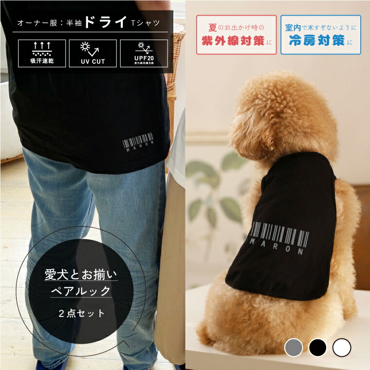 [送料無料]おそろいコーデ「OSOROI」 タンクトップ&半袖ドライTシャツ バーコード風 吸汗速乾 UVカット 犬とペアルック 2点セット 犬の服 ドッグウェア 犬とお揃い 名入れ 名前入り ギフト プレゼント