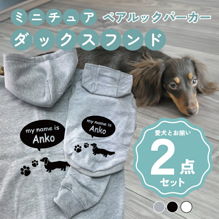 ミニチュアダックスフンド ダックスフント MINIATUREDACHSHUND ペット 犬グッズ 犬雑貨 ドッグ いぬ 小型犬 DOG 名入れ 名前入り ネーム入り name dog 犬雑貨 犬グッズ 犬服 ドッグウェア 犬の服 犬 ペット 服 ウェア 洋服 S M L XL 2L 3L 4L 日本製 春 夏 秋 冬 オリジナルドッグウェア 犬とお揃い ペアルック ペア おそろい お揃い 誕生日 オリジナル オーダーメイド おしゃれ シンプル バースデー プレゼント ギフト 御祝い お祝い 贈り物 御祝 お祝 記念日 記念品 バレンタインデー ホワイトデー 成人式 七五三 母の日 父の日 敬老の日 クリスマス 入学 卒業 入園 卒園 お誕生日 内祝い お土産 手土産 御礼 結婚祝い 出産祝い 年賀 転職【 重 要 】裏起毛ジップパーカースペック変更 現行モデルの在庫終了次第、順次新仕様のジップパーカーへ切り替えいたします。 ▼新仕様のジップパーカー 2025年11月28日時点(旧)ブラック LLサイズ → (新)ブラック XLサイズ(旧)グレー LLサイズ → (新)グレー XLサイズ 犬の服の実寸サイズは型紙用紙にてご確認いただけます。▼詳しくはこちらからご確認ください型紙用紙PDFデータ 【 犬の服 】商品詳細 ウェアカラー グレーブラックホワイト サイズ Mサイズ(首周り25cm×胴周り35cm×着丈26cm×前丈17cm)Lサイズ(首周り30cm×胴周り40cm×着丈29cm×前丈20cm)XLサイズ(首周り34cm×胴周り45cm×着丈33cm×前丈23cm)2Lサイズ(首周り38cm×胴周り50cm×着丈37cm×前丈26.5cm)3Lサイズ(首周り42cm×胴周り57.5cm×着丈41cm×前丈30cm)4Lサイズ(首周り46cm×胴周り65cm×着丈45cm×前丈33cm) 材質 綿70%ポリエステル30% ※日本製 【注意事項】 当店の犬服は市販品のサイズとは異なります。・サイズが生産ロットにより1〜2cm程度の誤差があるものがございます、ご了承ください。・胴回りは2〜4cm足したサイズが最適サイズとなります。・首回りは商品の目安とし購入時は胴回りをご参考ください。・犬の服はお洗濯はなるべく手洗いで陰干しすることをおすすめします。ご使用のディスプレイや閲覧環境などによって明るさや色彩などが現物と異なってみえる場合がございます、予めご了承ください。 【 飼い主の服 】 ウェアカラー グレーブラックホワイト サイズ 【旧ジップパーカー】 Mサイズ / Lサイズ / LLサイズ 【新ジップパーカー】 Mサイズ / Lサイズ / XLサイズ 素材 【旧ジップパーカー】 ポリエステル85%/綿15%※リブ:ポリエステル97% / ポリウレタン3% 【新ジップパーカー】 裏起毛 / 綿88% ポリエステル12% (表側:綿100%)※ダブルジップ仕様 生地の厚み 【旧ジップパーカー】 10.0オンス 【新ジップパーカー】 12.0オンス 【注意事項】 ご使用のディスプレイや閲覧環境などによって明るさや色彩などが現物と異なってみえる場合がございます、予めご了承ください。