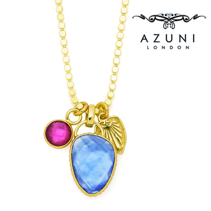 キャサリン妃着用ブランド AZUNI/アズニ ATHENA [ODESSEY]パームリーフ チャーム ペンダント 白蝶貝 クリスタル【atnn6blue】天然石 マザーオブパール タンザナイト 海外ブランド 人気 誕生日 プレゼント 記念日 アクセサリー ロングチェーン 45~50センチ アジャスター