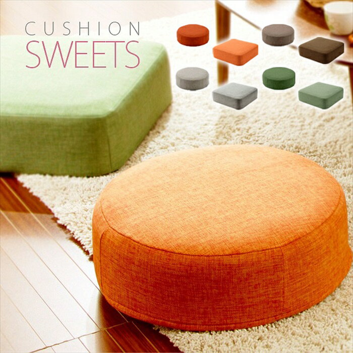 【楽天スーパーSALE10%OFF】クッション 座布団 四角 スクエア 丸 円 丸型 ラウンド フロアクッション 低反発ウレタン かわいい おしゃれ SWEETS 座る こども 子供 リビング 日本製