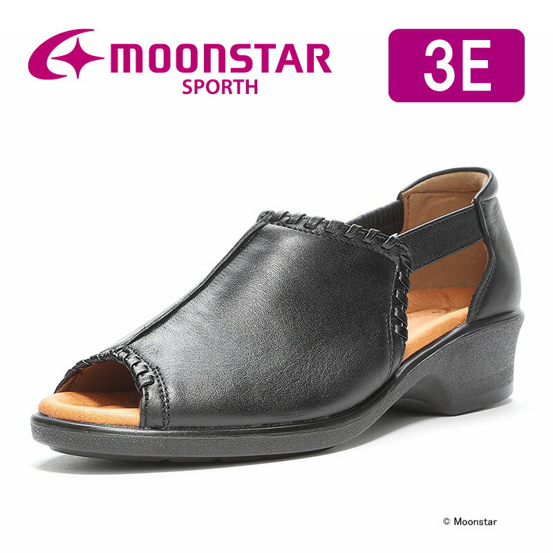 【11/30 00:00-12/1 23:59 10%OFFクーポン】ムーンスター moonstar スポルス レディース コンフォート サンダル SP9331 ブラック ゴア付 国産 日本製 母の日 黒 S 21.5cm 22cm M 22.5cm 23cm L 23.5cm 24cm 衝撃吸収 軽量設計 リラックス