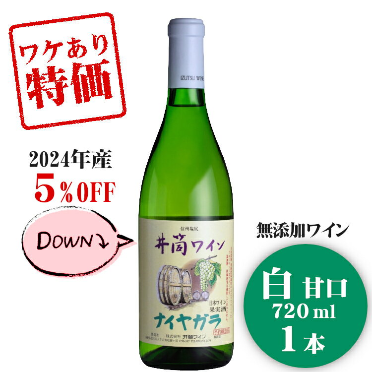 【2024年産・5%OFF】井筒ワイン 酸化防止剤無添加ナイヤガラ〔白・甘口〕720ml / 2024VT現品限り 日本ワイン 長野県産 国産 白ワイン ナイアガラ 酸化防止剤不使用 売り尽くしセール 訳あり アウトレット