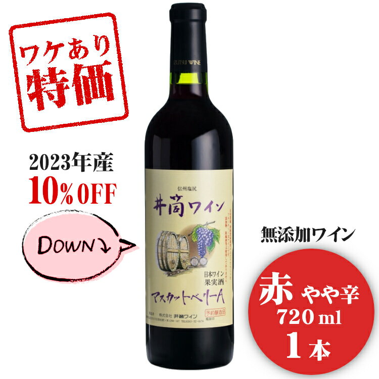 【2023年産のため10%OFF】 井筒ワイン 酸化防止剤無添加マスカットベリーA〔赤・やや辛口〕 720ml / 2023VT現品限り 日本ワイン 長野県産 国産 酸化防止剤不使用 赤ワイン イヅツ 売り尽くしセール 訳あり アウトレット