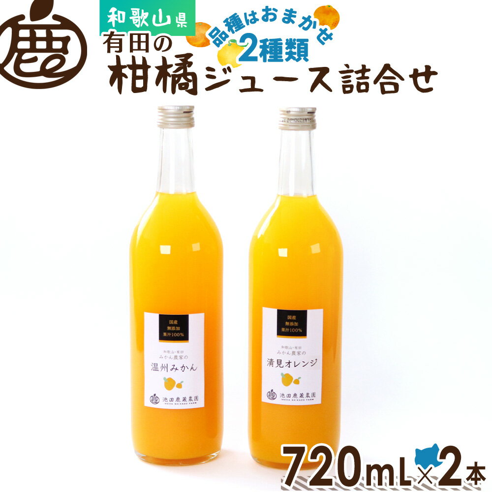 ★ジュースセール 20%OFF★ 有田の柑橘 ジュース 詰め合わせ 720ml×2本・2種類【 送料無料 無添加 国産 100% ストレートジュース 詰合せ 品種おまかせ 温州みかん 清見オレンジなど 和歌山 】