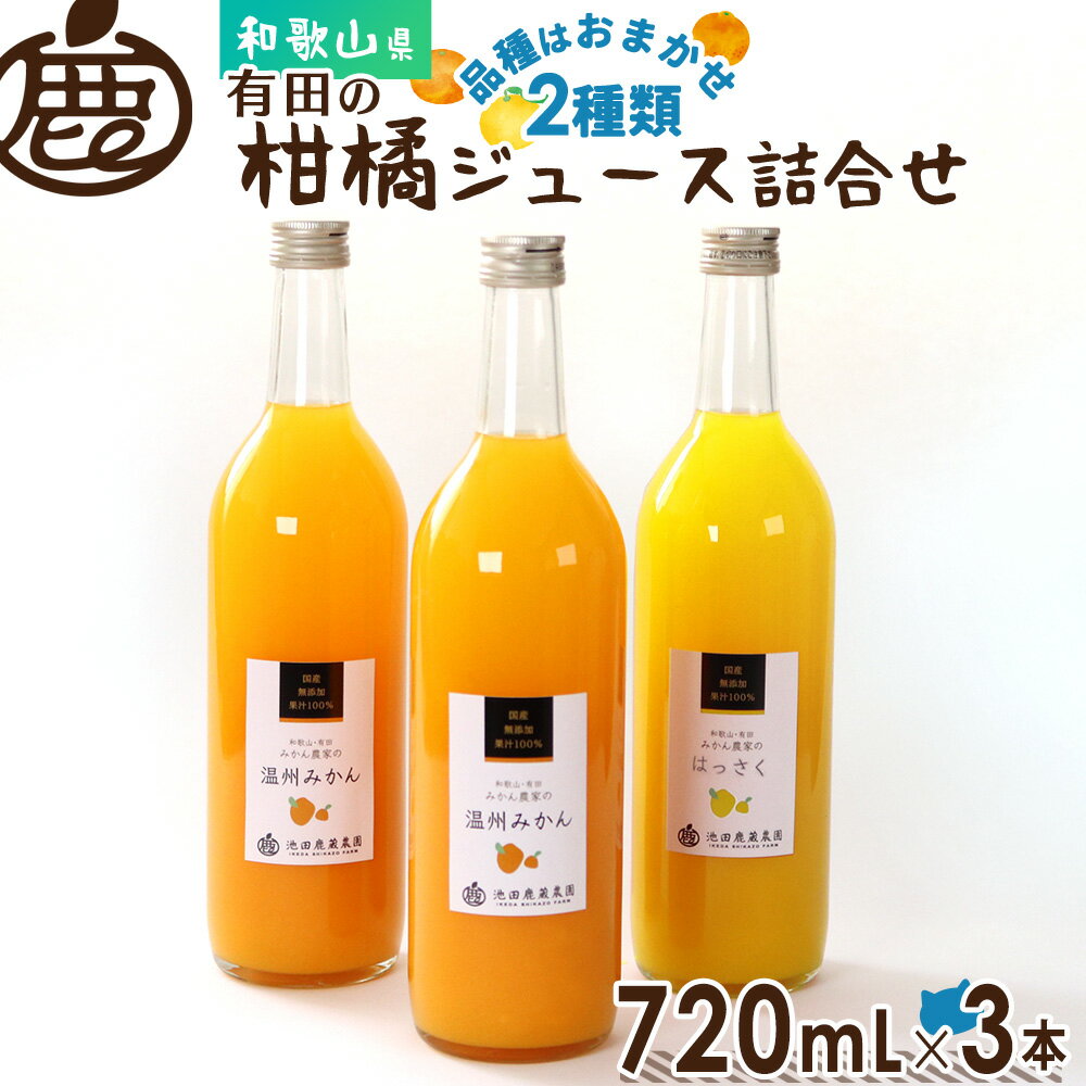 ★ジュースセール 20%OFF★ 有田の柑橘 ジュース 詰め合わせ 720ml×3本・2種類【 送料無料 無添加 国産 100% ストレートジュース 詰合せ 品種おまかせ 温州みかん 清見オレンジなど 和歌山 】