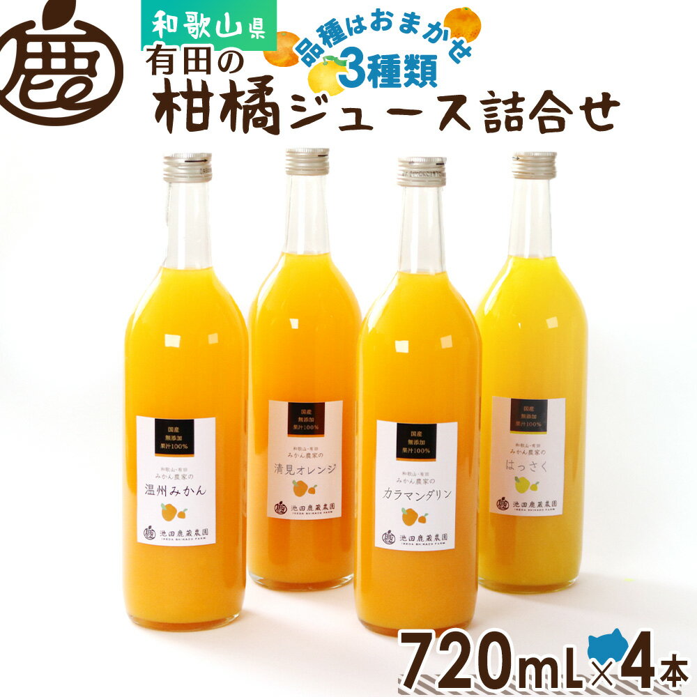 ★ジュースセール 20%OFF★ 有田の柑橘 ジュース 詰め合わせ 720ml×4本・3種類【 送料無料 無添加 国産 100% ストレートジュース 詰合せ 品種おまかせ 温州みかん 清見オレンジなど 和歌山 】
