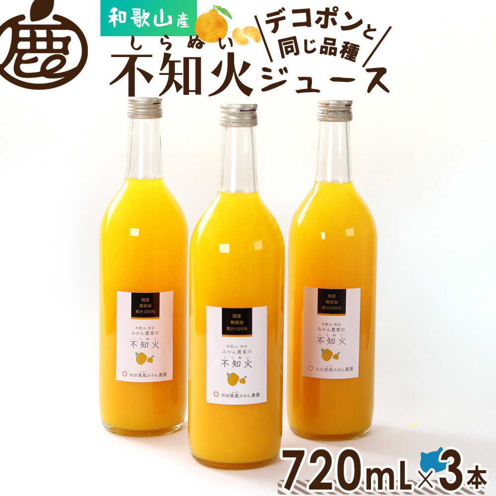 ★ジュースセール 20%OFF★ 不知火 しらぬい ジュース 720ml×3本 【 送料無料 無添加 国産 100% ストレートジュース しらぬひ シラヌイ デコポン 柑橘 和歌山 】