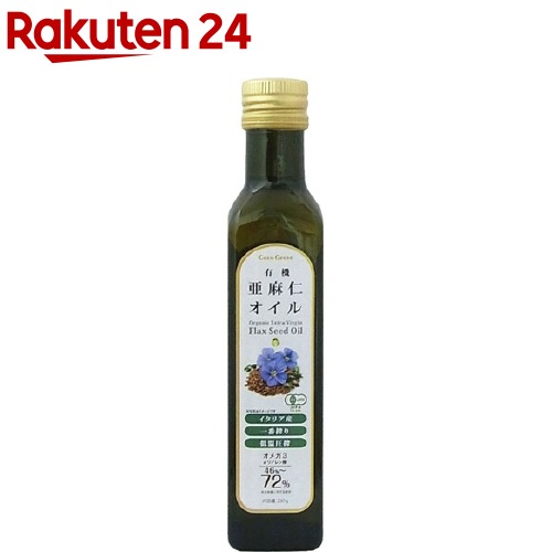 お店TOP>健康食品>健康油>オメガ3系 不飽和脂肪酸>亜麻仁油(フラックスオイル)>Coco Grove 有機亜麻仁オイル (230g)商品区分:有機JAS認定【Coco Grove 有機亜麻仁オイルの商品詳細】有機の亜麻の種(フラックスシード)100%を原料とし、栄養分を壊さないよう低温圧搾(コールドプレス)しました。オメガ3αリノレン酸46%-72%。有機JAS認定食品。【Coco Grove 有機亜麻仁オイルの原材料】・品名・名称:有機食用アマニ油・原材料:有機食用アマニ(100%)・栄養成分表示:100g当りエネルギー:892kcaL、たんぱく質:0g、脂質:100g(オメガ3:αリノレン酸:46.0g-72.0g、オメガ6:リノール酸:15.0g-22.0g、オメガ9:オレイン酸:13.0g-29.0g)、炭水化物:0g、食塩相当量:0g【栄養成分】・品名・名称・・・有機食用アマニ油・原材料・・・有機食用アマニ(100%)・栄養成分表示・・・100g当りエネルギー・・・892kcaL、たんぱく質・・・0g、脂質・・・100g(オメガ3・・・αリノレン酸・・・46.0g-72.0g、オメガ6・・・リノール酸・・・15.0g-22.0g、オメガ9・・・オレイン酸・・・13.0g-29.0g)、炭水化物・・・0g、食塩相当量・・・0g【注意事項】・オイルに含まれるオメガ3は熱や光、酸素に弱いです。加熱調理には使わず、生のままお召し上がりください。・使用後は必ず蓋をして、できるだけ空気にふれないようにしてください。・開封後は必ず冷蔵庫で保存し、お早めにご使用ください。・オイルの中に水が入るとカビが発生する原因になります。・自然のものなので底に沈殿物がたまることがありますが品質には問題ありません。【原産国】イタリア【ブランド】Coco Grove【発売元、製造元、輸入元又は販売元】アズマ(食品)リニューアルに伴い、パッケージ・内容等予告なく変更する場合がございます。予めご了承ください。アズマ(食品)06-6782-4350広告文責:楽天グループ株式会社電話:050-5577-5043[食用油/ブランド:Coco Grove/]