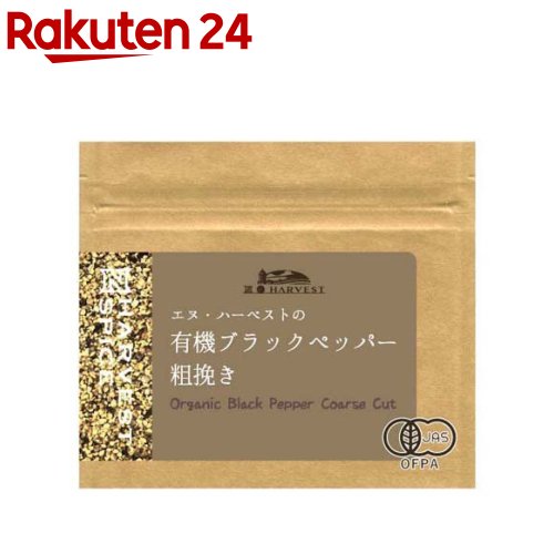 お店TOP>フード>調味料・油>スパイス(香辛料)・薬味>ブラックペッパー>有機ブラックペッパー粗挽き (20g)商品区分:有機JAS認定【有機ブラックペッパー粗挽きの商品詳細】コショウの未熟な実を乾燥させたスパイスです。肉類の下味付けや、料理の仕上げにふりかけるなど、さまざまな使い方ができます。有機JAS認定商品。【有機ブラックペッパー粗挽きの原材料】・名称・品名:有機ブラックペッパー粗挽き・原材料:有機ブラックペッパー・栄養成分表示:本品1袋あたり/エネルギー:51kcaL、たんぱく質:2.2g、脂質:0.6g、炭水化物:12.9g、食塩相当量0.0g【栄養成分】・名称・品名:有機ブラックペッパー粗挽き・原材料:有機ブラックペッパー・栄養成分表示:本品1袋あたり/エネルギー:51kcaL、たんぱく質:2.2g、脂質:0.6g、炭水化物:12.9g、食塩相当量0.0g【注意事項】開封後は虫害や吸湿を防ぐため、チャックをしっかりと閉めて冷暗所に保存のうえ、賞味期限に関わらずお早めにお使いください。【原産国】原料原産地:スリランカ、最終加工国:日本【ブランド】N・HARVEST(エヌ・ハーベスト)【発売元、製造元、輸入元又は販売元】エヌ・ハーベストリニューアルに伴い、パッケージ・内容等予告なく変更する場合がございます。予めご了承ください。エヌ・ハーベスト167-0054 東京都杉並区松庵3-31-17-1F03-5941-3986広告文責:楽天グループ株式会社電話:050-5577-5043[調味料/ブランド:N・HARVEST(エヌ・ハーベスト)/]