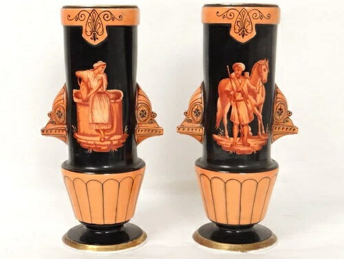 希少な磁器の花瓶ペア パリ 東洋主義 人物 馬 19世紀