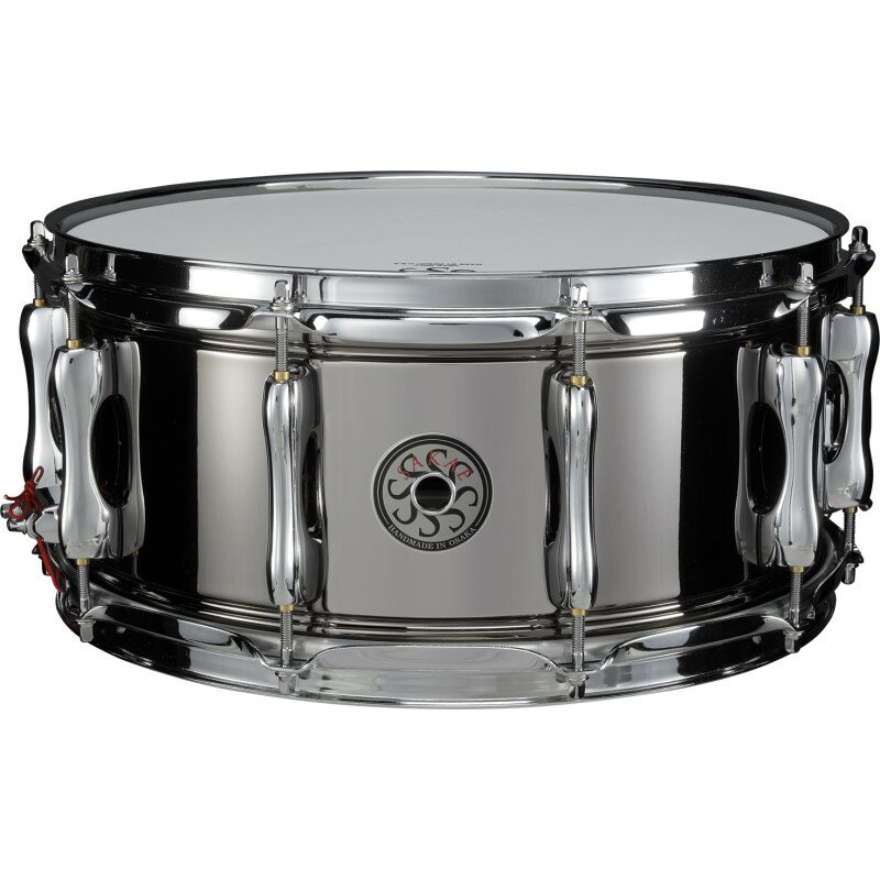 ■商品紹介※店頭にて試打を解禁しております為、細かな傷や打痕などがございます。予めご了承ください。JAPAN CUSTOM SNAREシリーズに、STEELとBRASSのメタル・スネアが登場。大阪にてハンドメイドで製作するJAPAN CUSTOMSNAREシリーズに、STEELとBRASSのメタル・スネアが新たに登場。STEELは、幅広いジャンルや奏法にマッチする定番のメタル・スネア。BRASSは、煌びやかなサウンドと中低域のリッチ感があり、高級感のあるブラック・ニッケルに仕上げました。金属パーツ類は、合金の配合から肉厚まで研究し、すべて音楽的に作られています。スネア・ワイヤー(スナッピー)は、ハイカーボン素材を採用。特殊な熱処理により、強靭ながら、しなやかさを持ち合わせ、シェルの素材特性を限りなく引き出します。また、メタル・シェルには2か所にビート加工(凹み)をしており、落下やぶつかり事故などから円芯を保つ役割と余分な倍音をカットしたタイトなサウンドを実現します。ASS SNARE DRUMS>ブラス胴特有の煌びやかなサウンドと中低域のリッチ感のあるサウンドが特徴です。ウルトラ・ハイカーボン・スチールを20使用したスネア・ワイヤーを採用。ロック・バンドにオススメの1台です。切れ味の良いアタック感と明瞭でパワフルなサウンドは、まさにロックバンドに最適なスネアと言えるでしょう。14''×5.5''と14''×6.5''、そして13''×6.5''の3サイズを用意しました。●シェルBrass Shellは亜鉛の合金で加工しやすく振動の伝達も良く、古くから金管楽器に使われている素材です。明るく華やかな倍音をもち、STEELよりマイルドなサウンドを持ち、存在感のあるサウンドです。Shellは高級感のあるBlack Nickel Prateで仕上げました。●スネア・ワイヤー特殊な熱処理によるウルトラ・ハイカーボン製のスネア・ワイヤーを使用しています。一般的なハイカーボンよりも多くのカーボンを含むことで、強度が増し、より速く、シャープなレスポンスを実現しています。●フープJAPAN CUSTOM SNAREには、SAKAEおなじみのRighty Haloを採用しています。フープ・エッジが外側を向いていて、持ち得る倍音を素直に出します。●ダイキャスト・ラグ適切な素材を用いることにより、シェルの長所を最大限に引き出しています。●ストレイナー非常に高感度かつ正確なストレイナーは、プレイヤーが求める繊細なテンションを自由自在に設定することができます。<スペック>サイズ:14''×6.5''シェル:ブラス 1.0mm Black Nickel Prate仕上げストレイナー:STR02Cバット:STB01Cフープ:RH1410H (Righty Halo Hoop 10-hole)スナッピー:SN1420-0530 (Ultra Hi-carbon Wire)ヘッド:BA-0114-00 / SA-0114-00検索キーワード:イケベカテゴリ_ドラム_スネアドラム_SAKAE OSAKA HERITAGE_アウトレット SW_SAKAE OSAKA HERITAGE_アウトレット JAN:4959112246942 登録日:2025/06/06 スネア スネアドラム 栄 サカエ サカエドラムス サカエドラム サカエオーサカヘリテージ