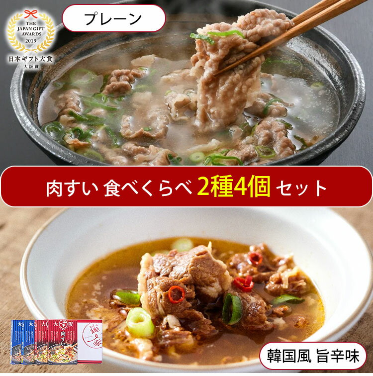 お歳暮 大阪ぐるめすぅぷ肉すい4個 ギフトセット(プレーン、韓国風旨辛味 各2個) 無添加 大阪名物・肉吸い 日本ギフト大賞2019大阪賞 崔家の健美鍋 ギフト のし対応可 冬ギフト