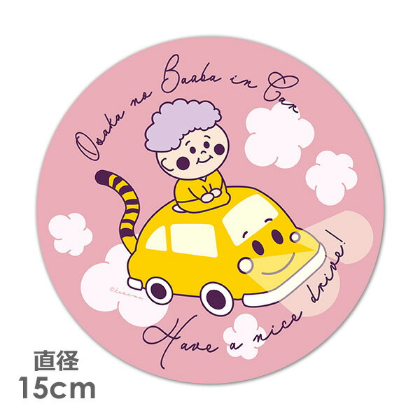 【ブラックフライデー期間ポイントUP】【車ステッカー】車に乗った大阪のおばあちゃん【Osaka no Baaba in Car】丸型15cm車マグネットステッカー ゆうパケット対応210円〜