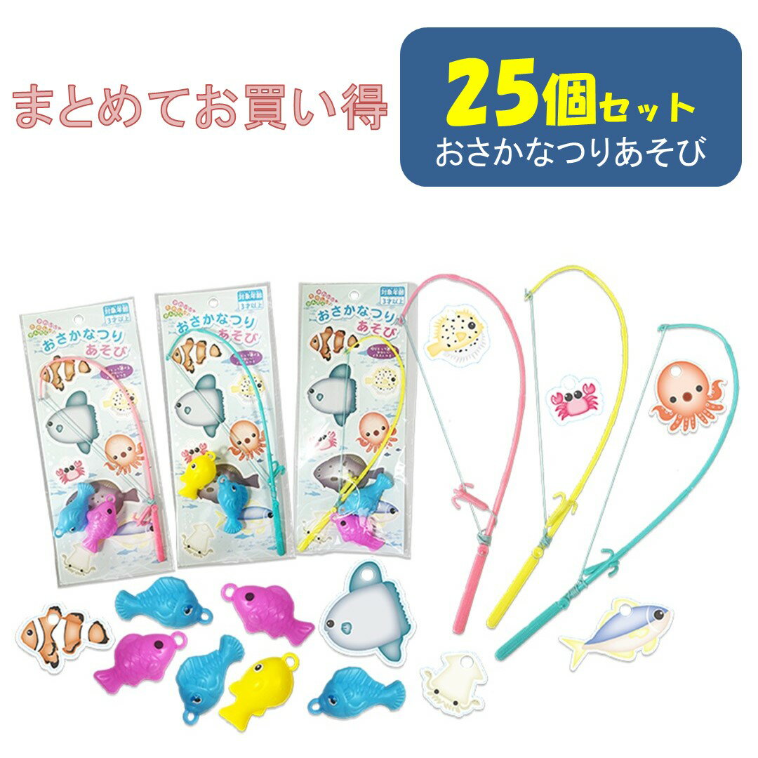 おさかなつりあそび 25個入りセット 外装サイズ:W110×D20×H250 本体サイズ:W55×D20×H30(魚) 色種類 :1種多色 包装形態:OPP 本体材質:PP/PE 対象年齢:3歳以上 色、柄、種類等はおまかせになります。 ご容赦ください。