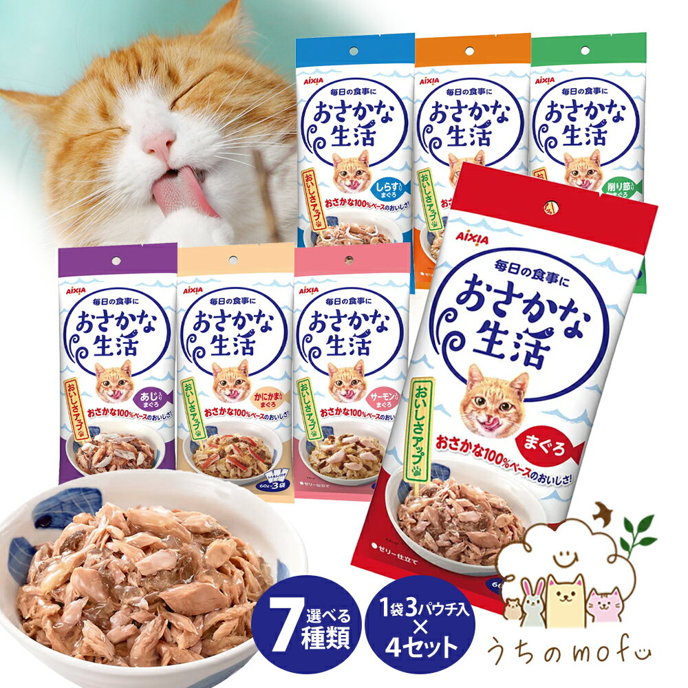 <5%OFFクーポン>おさかな生活 猫 7種類から 選べる 4個 セット まぐろ あじ サーモン しらす ささみ 削りぶし かにかま アイシア ペット キャットフード ウェット ウェットフード レトルトパウチ レトルト ペットフード猫 柔らかい 成猫