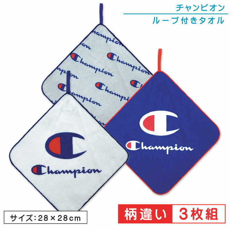 【エントリーで最大P6倍 27日1:59迄】チャンピオン Champion ループタオル 3枚セット 28×28cm 綿100% ネームタグ付き 制菌加工 キャラクター 保育園 幼稚園 ループ付きタオル 男の子 女の子 おしゃれ ハンカチ ハンドタオル おしぼりタオル[rt3]【メール便OK】
