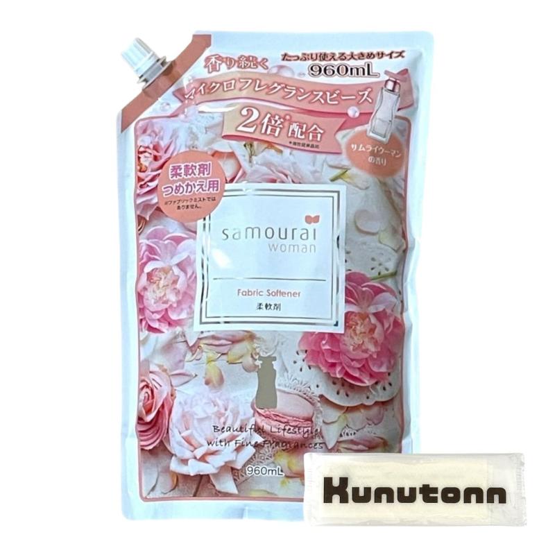 サムライウーマン 柔軟剤 サムライウーマンの香り 詰め替え 大容量 960ml + Kunutonnオリジナルロゴ入りhおしぼり付