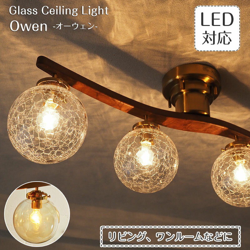 【11%OFFクーポン★15日有効】 シーリングライト おしゃれ 木 ガラス 照明器具 ライト リビング 照明 間接照明 天井照明 アンティーク 北欧 レトロ LED電球対応 ガラス リビング 居間 4灯 Owen オーウェン LT-4025 新生活 引越