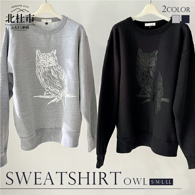 【ふるさと納税】 スウェットシャツ トレーナー S~LL 選べるカラー グレー ブラック ユニセックス フクロウ オリジナルデザイン プリント 裏起毛 保温性 厚手 ファッション 衣類 服 OWL SWEATSHIRT 山梨県 北杜市 送料無料