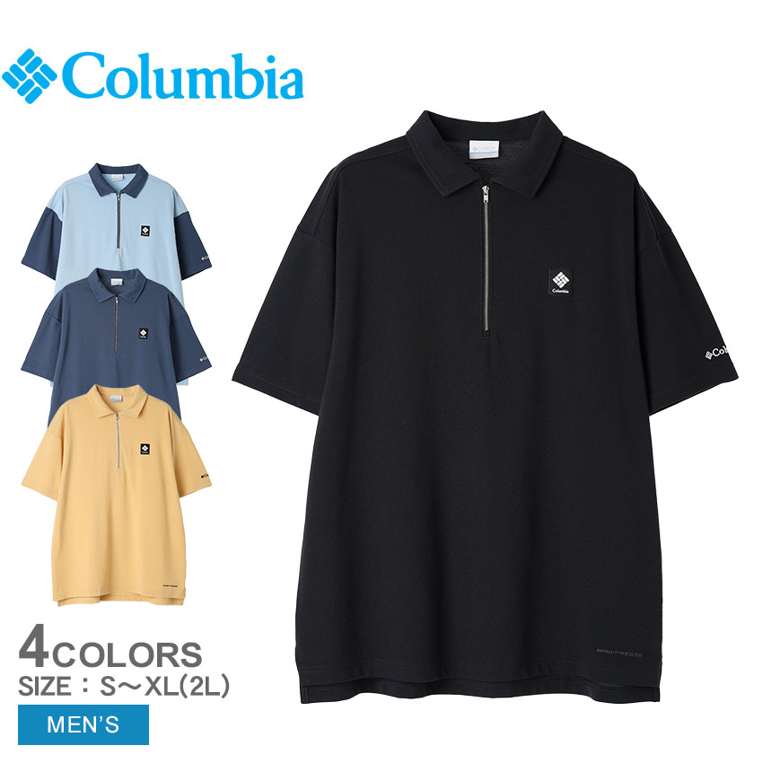 コロンビア ビーボウルショートスリーブポロ 半袖ポロシャツ メンズ ブラック 黒 ブルー 青 COLUMBIA Bee Bowl S/S Polo PM0921 半袖 トップス ウェア ポロ カットソー 襟付き 衿付き ハーフジップ 冷感 速乾 UVカット トップス カットソー 国内正規品