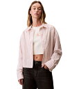 カルバンクライン レディース トップス シャツ コットン Calvin Klein Jeans Women's Stripe Boxy Cotton Crop Shirt AMPARO ストライプ