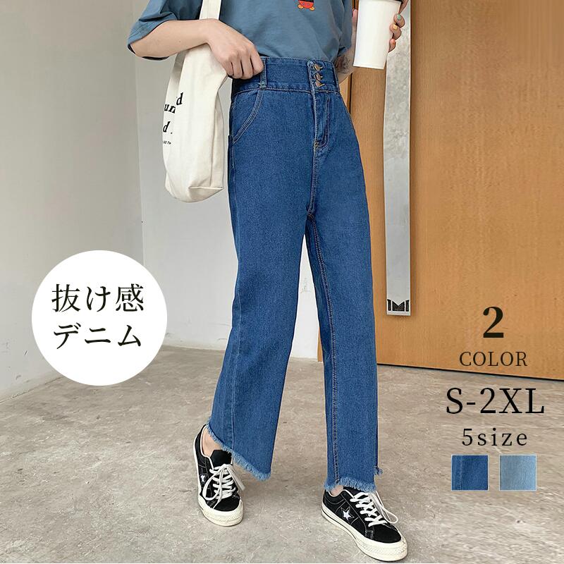 パンツ デニム レディース デニムパンツ ディース デニム ワイド ワイドパンツ ボトムス 無地 ロング 体型カバー 大きいサイズ おしゃれ オシャレ お洒落 個性的 個性派 動きやすい ゆったり