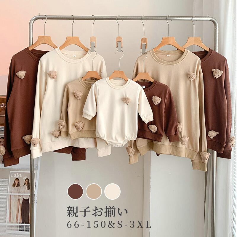 親子お揃い ペアルック 秋 クマ付き リンクコーデ 親子セット 親子 赤ちゃん ロンパース 親子コーデ bear 長袖 動物 親子 ペアtシャツ トップス 子供服 親子お揃い 服 女の子 男の子 パパ 父 娘 大きいサイズ 母の日 誕生日 プレゼント