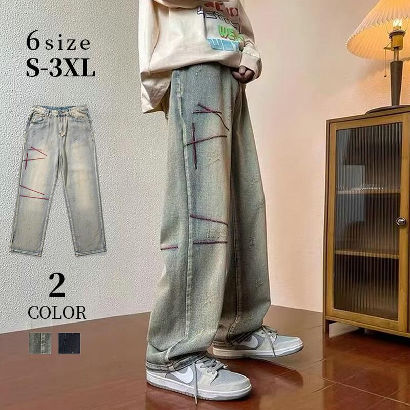 韓国 ファッション ゆったり ワイドデニムパンツ バギーパンツデニム 体型カバー リラックスパンツ メンズ ルーズフィット 春服 秋服 冬服 冬ボトム ボトムス 個性 モード メンズファッション カジュアル トレンド 大きいサイズ ストリート系