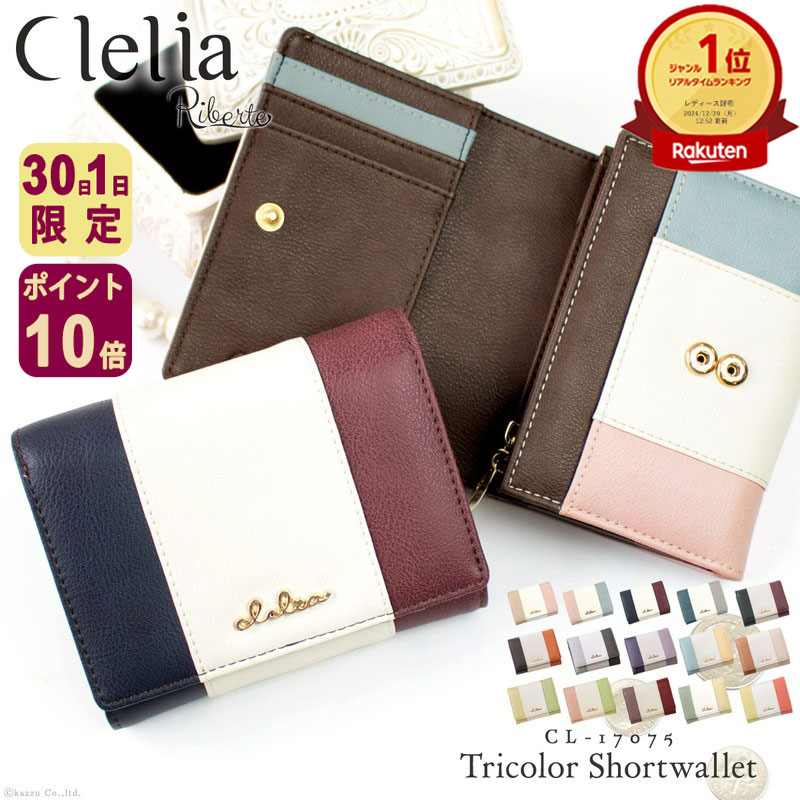 【11/30-12/1限定!P10倍】【ランキング1位】二つ折り財布 レディース 使いやすい ポケットたくさん ブランド ミニ 大容量 カード 財布 コンパクト 小さい 小銭入れ 大人 かわいい おしゃれ 人気 Clelia クレリア リベルテ CL-17075 送料無料 C8 C12