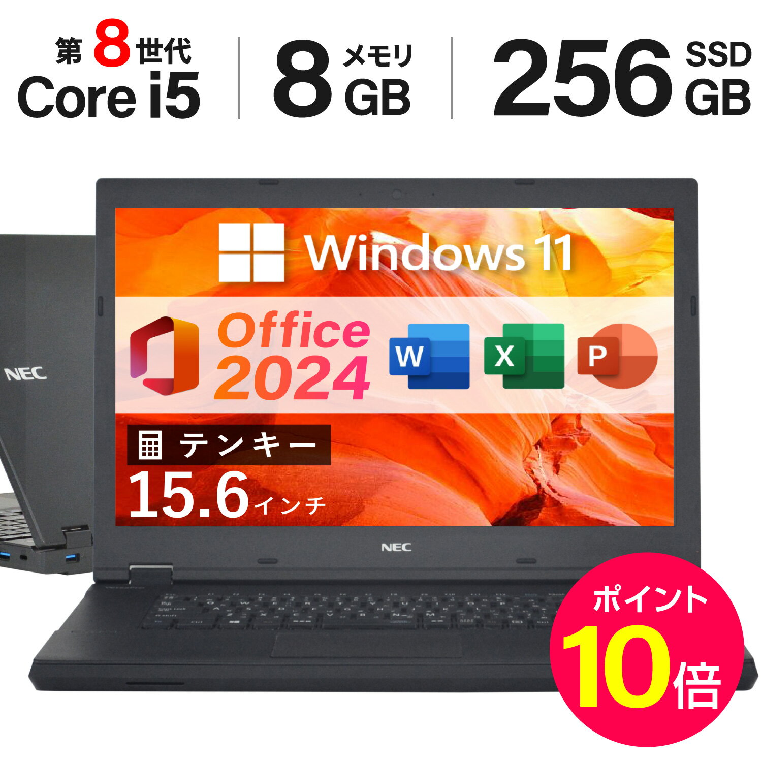 P10倍※11/30まで!|中古ノートパソコン Windows11 Microsoft Office 付き|2024H&B|店長厳選|Core i5 第8世代 メモリ 8GB SSD 256GB|中古パソコン オフィス付き 中古PC|テンキー|豪華特典付き|初期設定済み|整備済み