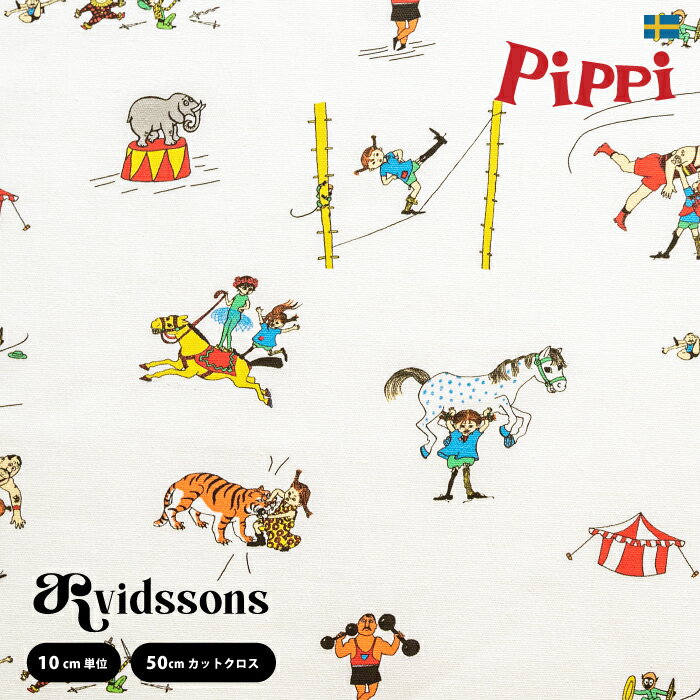 長くつ下のピッピ 北欧生地 生地幅150cm 綿100% Pippi Pa Cirkus ピッピ サーカスに行く ホワイト ARVIDSSONS TEXTIL アルビッドソンズ テキスタイル [10cm単位はかり売り/お試しハーフカットからお選びください]
