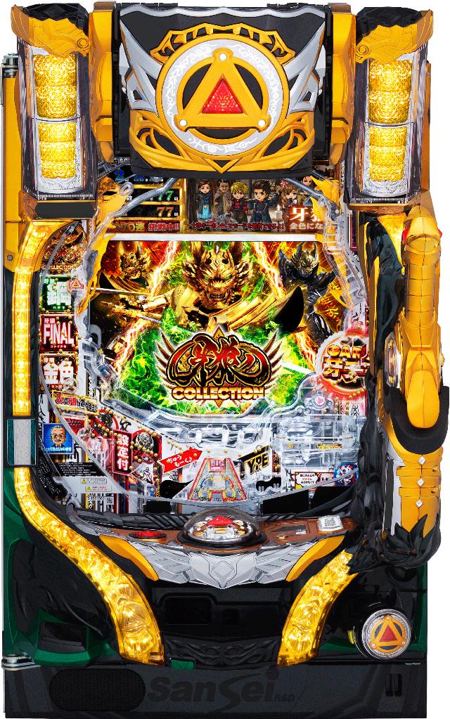 ・本商品は重心が前方にあり非常に不安定なため、転倒の恐れがございます。 ・本商品は扉が大きいため、2梱包での発送となります。そのため、送料を2台分頂戴しております。 ・組み立て時の破損につきましては対応致しかねますので、お客様ご自身の責任のもと行ってください。 ・扉のお取り付け/お取り外しは、扉を開けた状態で行うため、パチンコ用流通キーが必要となります。 機種概要 メーカー サンセイR&D 型式名 P牙狼コレクションRJ タイプ ライト 継続回数 2or3or10R10カウント 出玉数 約300個or約450個or約1,500個 賞球数 3&5&15 大当たり確率 1/179.55 備考 【設定付きパチンコ】 大当たり確率/平均連チャン数 1:1/179.55 → 1/89.77 1.1回 2:1/169.78 → 1/84.89 1.1回 3:1/159.84 → 1/79.92 1.1回 4:1/149.28 → 1/74.64 1.1回 5:1/139.14 → 1/69.57 1.1回 6:1/129.77 → 1/64.88 1.1回 機種紹介 サンセイAタイプパチンコ第1弾として『P牙狼コレクション』が登場した。 本機は、大当たりのみで出玉を増やし、大当り後は通常時に戻り、再度大当たりを目指す、パチスロのAタイプのようなゲーム性が特徴となっている。 また、ヘソの広さが従来の約1.5倍もある「超ドデカS(スタート)」を搭載している。 さらに、保留を8個貯められる「エイトチャンスシステム」と7個以上の保留を高速消化する「速ZONE」によって時速 約600回転の消化が可能となっている。 演出面では、「CR牙狼 魔戒閃騎鋼」「CR牙狼FINAL」「CR牙狼金色になれ」の右打ち演出であるRUSH演出を左打ち中に堪能できる。 左打ち中の演出は、150回転1セットの構成となっているが、デモ画面や変動中の十字キー上ボタンでいつでも変更可能。 大当たりは、2Ror10R大当たりの「GARO牙チャBONUS」と3R大当たりの「REG BONUS」と10R大当たりの「BIG BONUS」を搭載している。 スペックは、大当たり確率1/179.55(設定1)~1/129.77(設定6)の6段階設定付きタイプ。 大当たりは全て出玉ありとなっている。 ※「パチンコ用設定キー」が必要な機種の場合は付属しております。※