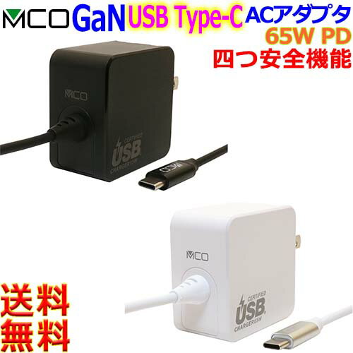 MCO ミヨシ GaN 小型 IPA-GC15AN PD65W USB Type-C ACアダプター ケーブル一体型 高速充電 AC100V〜240V 海外対応【送料無料c】usb type c PD65W AC-DC charger