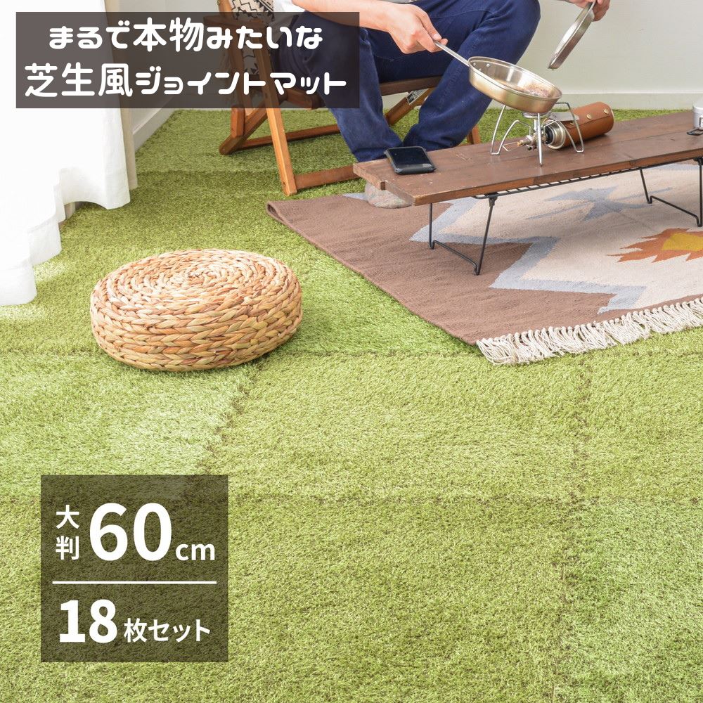 【メーカー直送品】 芝生風 ジョイントマット シーヴァ 約60×60cm 18枚入り 大判 サイドパーツ付き 萩原 | 芝生風 室内用 屋内 おしゃれ 大判 子供部屋 緑 グリーン おうちキャンプ 敷き詰め ジョイントラグ 赤ちゃん プレイマット オールシーズン