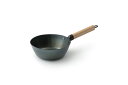 キッチンを彩る「黒」 KN Industrie THE BLACK designed by Lala Caffi knIndustrie Black collection pan 20cm イタリアのデザインキッチンツールブランド KN Industrieから、美しく使い勝手の良い新シリーズ「THE BLACK」が登場しました その名の通り、本体のマットブラックカラーが特徴的な「THE BLACK」 シンプルなフォルムの美しさを”黒”が際立たせ、キッチンを”彩り”ます ハンドルに用いられたスクエアフォルムのウェンジ材は熱に強いウッド素材 「THE BLACK」は機能的でありつつ、シックで上質な雰囲気を放ちます 見た目の美しさはもちろん、使い勝手の良さが「THE BLACK」最大の魅力です チタン配合フッ素コーティングが施されたアルミ製の本体(IH対応)はこびりつき知らず、使い終わった後もスルッと汚れが落ちて、毎日の調理が楽しくなります