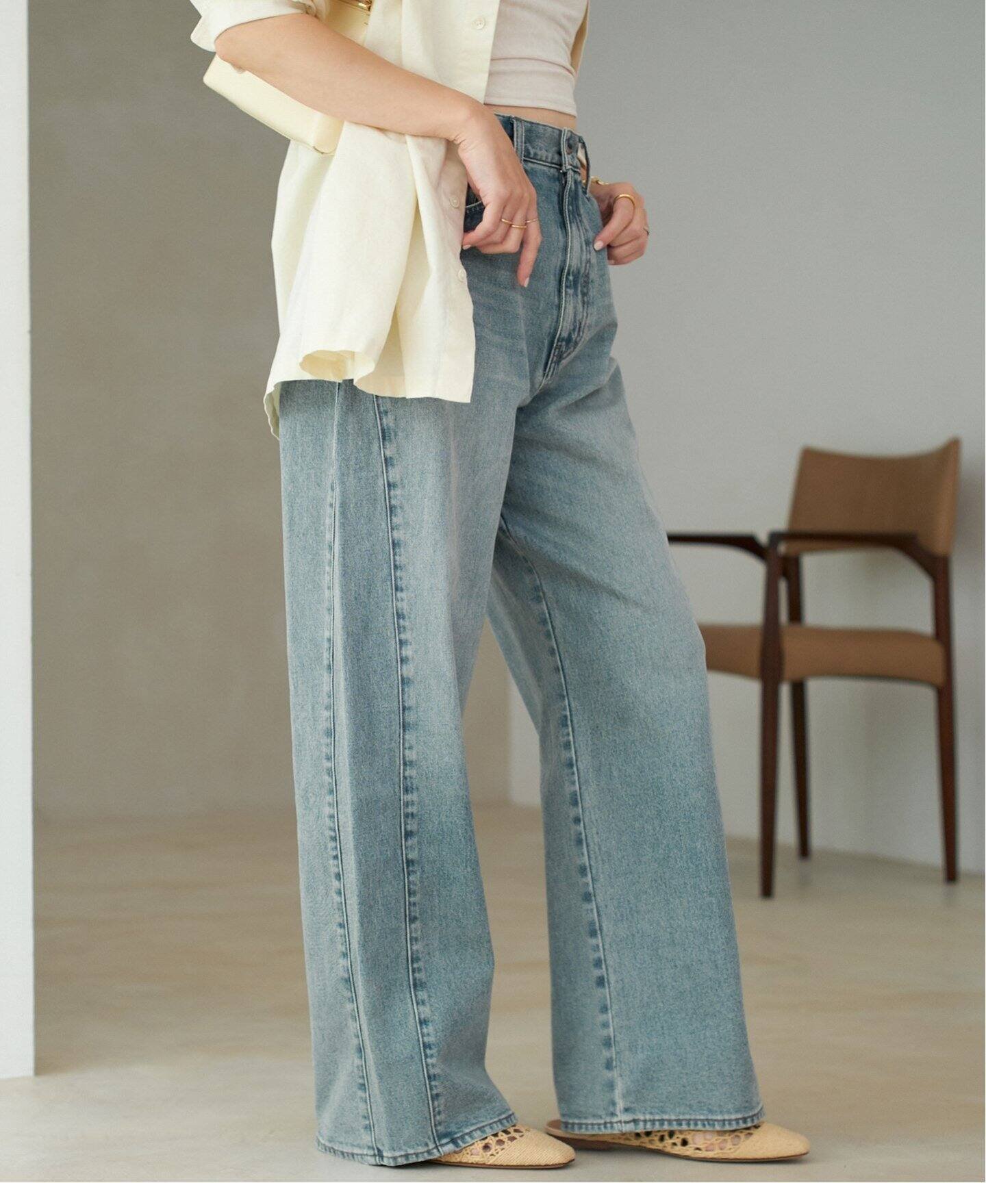 plage(プラージュ)pannel デニム脇に施した切り替えパネルが、さりげないアクセントになるデニムパンツ。腰まわりにゆとりを持たせながらも、ハイライズの緩やかなテーパードシルエットが脚のラインを美しく引き立てます。トップスを選ばず着回しやすく、シャツやブラウスを合わせればきれいめなスタイリングにも◎カラーは、大人の装いに馴染むニュアンスグレーと、ベーシックなブルーの2色展開です。**********************透け感:なし裏地:なし伸縮性:ややあり光沢感:なし生地の厚さ:普通**********************※画像の商品はサンプルを使用している為、実際の商品と仕様が若干異なる場合があります。※取り扱いについては、商品についている品質表示でご確認ください。※店頭及び屋内外での撮影画像は、光の当たり具合で色味が違って見える場合があります。商品の色味は、商品アップ画像をご参照ください。また、お客様のお使いのPCのモニター環境などにより色味が違って見える場合があります。予めご了承の上ご注文ください。グレーA着用スタッフ身長:165cm着用サイズ:38ブルーA着用スタッフ身長:166cm着用サイズ:38詳細着用スタッフ身長:162cm着用サイズ:38型番:25030922726030-045-034 PP7572【採寸】サイズウエストヒップ股上股下もも周りすそ幅パンツ丈3463972670612498366610028736426101.5387010428.5746526.5103.5商品のサイズについて【商品詳細】中国素材:本体:綿99%、ポリウレタン1%サイズ:34、36、38本体:洗濯機洗い(弱)※画面上と実物では多少色具合が異なって見える場合もございます。ご了承ください。商品のカラーについて 【予約商品について】 ※「先行予約販売中」「予約販売中」をご注文の際は予約商品についてをご確認ください。■重要なお知らせ※ 当店では、ギフト配送サービス及びラッピングサービスを行っておりません。ラッピング・ギフト配送について同時に複数の商品を注文された場合メーカー希望小売価格についてご利用ガイドplage(プラージュ)pannel デニム脇に施した切り替えパネルが、さりげないアクセントになるデニムパンツ。腰まわりにゆとりを持たせながらも、ハイライズの緩やかなテーパードシルエットが脚のラインを美しく引き立てます。トップスを選ばず着回しやすく、シャツやブラウスを合わせればきれいめなスタイリングにも◎カラーは、大人の装いに馴染むニュアンスグレーと、ベーシックなブルーの2色展開です。**********************透け感:なし裏地:なし伸縮性:ややあり光沢感:なし生地の厚さ:普通**********************※画像の商品はサンプルを使用している為、実際の商品と仕様が若干異なる場合があります。※取り扱いについては、商品についている品質表示でご確認ください。※店頭及び屋内外での撮影画像は、光の当たり具合で色味が違って見える場合があります。商品の色味は、商品アップ画像をご参照ください。また、お客様のお使いのPCのモニター環境などにより色味が違って見える場合があります。予めご了承の上ご注文ください。グレーA着用スタッフ身長:165cm着用サイズ:38ブルーA着用スタッフ身長:166cm着用サイズ:38詳細着用スタッフ身長:162cm着用サイズ:38型番:25030922726030-045-034 PP7572【採寸】サイズウエストヒップ股上股下もも周りすそ幅パンツ丈3463972670612498366610028736426101.5387010428.5746526.5103.5商品のサイズについて【商品詳細】中国素材:本体:綿99%、ポリウレタン1%サイズ:34、36、38本体:洗濯機洗い(弱)※画面上と実物では多少色具合が異なって見える場合もございます。ご了承ください。商品のカラーについて