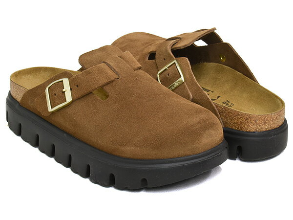 BIRKENSTOCK BOSTON PAP CHUNKY【ビルケンシュトック ボストン チャンキー】【パピリオ PAPILLIO サンダル 厚底 クロッグ ビルケン ナロー 細幅 スエードレザー スウェード ダークティー ブラウン ブラック】DARK TEA / BLACK / SUEDE LEATHER