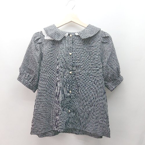 ◇ ParAvion チェック柄 パフスリーブ かわいい ガーリー 半袖 ブラウス サイズF ブラック レディース E 【中古】