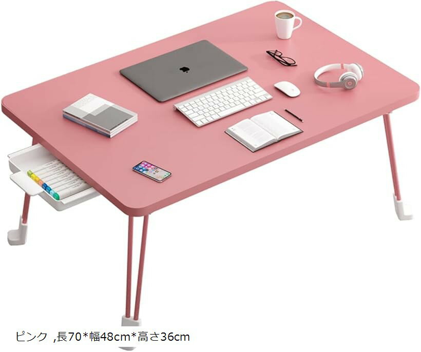 NEW多機能 折りたたみテーブル 非常に安定している 折り畳みテーブルパソコンデスク座卓 おりたたみテーブル ベッドテーブル ローテーブル 折りたたみミニテーブル (ピンク, 高さ36cm + ミニ引き出し)