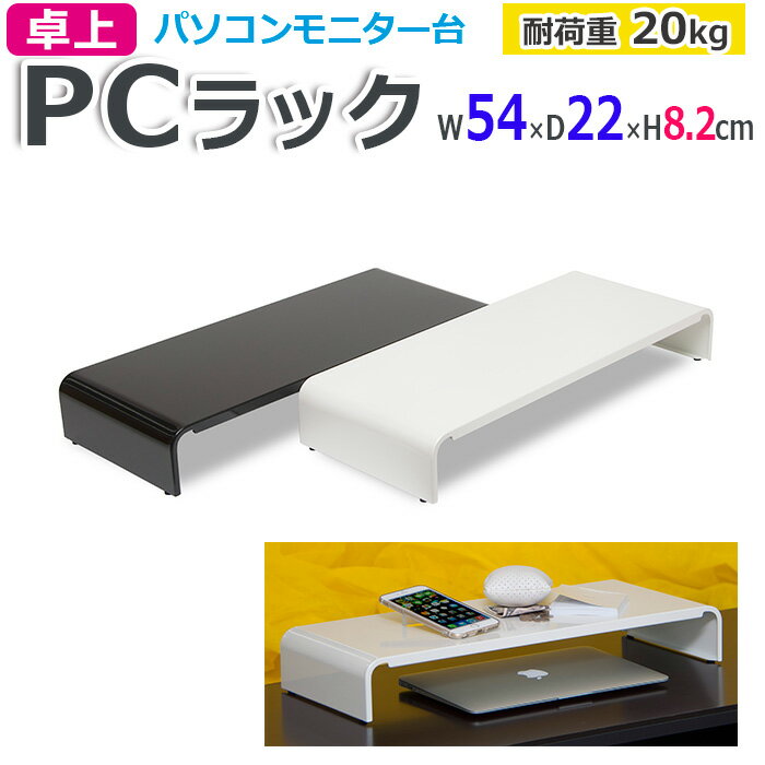 収納ラック 卓上 ラック モニター台 PCラック 幅 54cm 奥行 22cm 耐荷重 20kg デスクラックモニター置き デスク収納 机上ラック 机上台 収納 おしゃれ スチール製 丈夫 サビに強い W54×D22×H8.2cm PCR-54 (R) 黒 白 black whiteくろ しろ