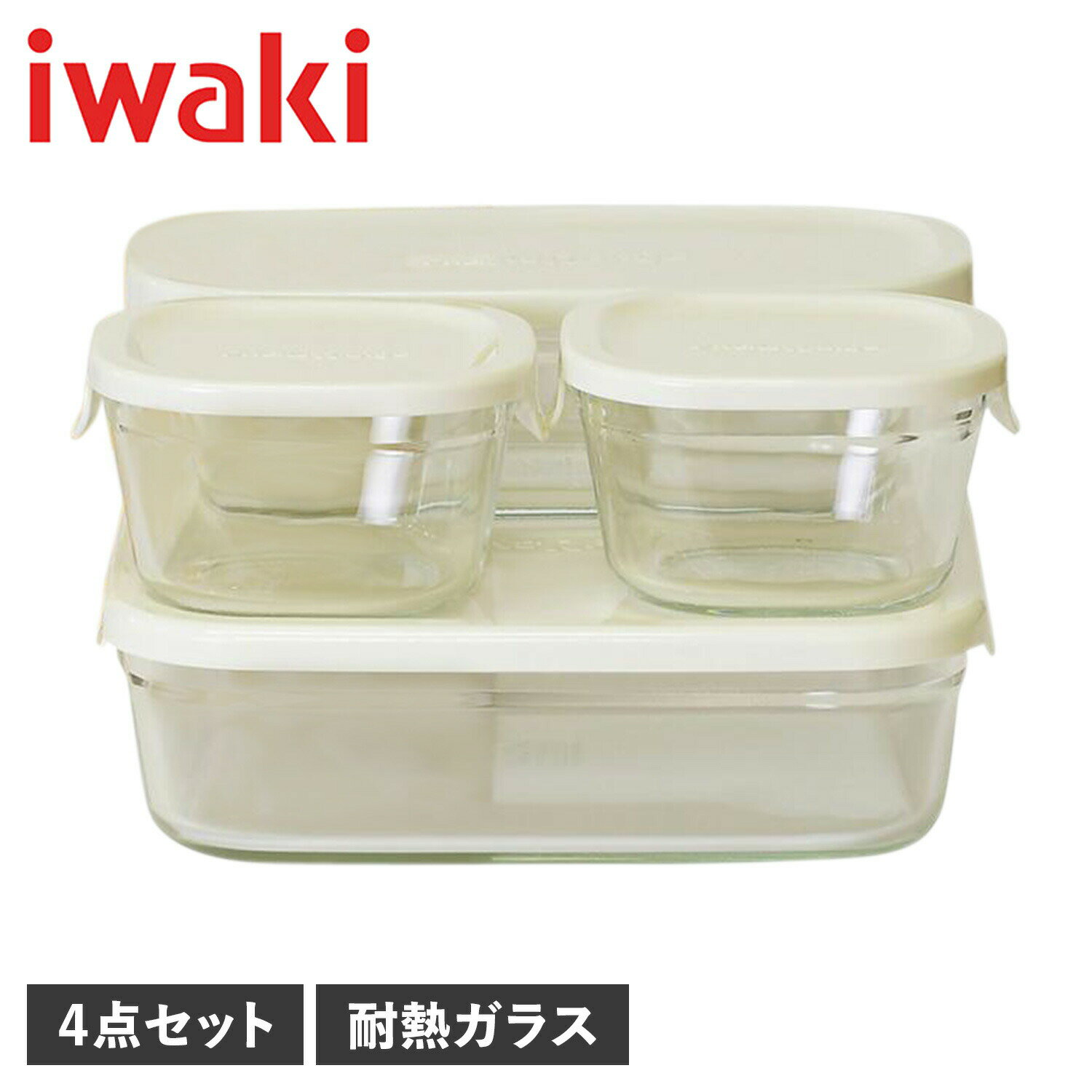 iwaki PACK&RANGE イワキ パック&レンジ 耐熱ガラス 保存容器 ガラス容器 4点セット 電子レンジ オーブン対応 PCY-PRN-4W