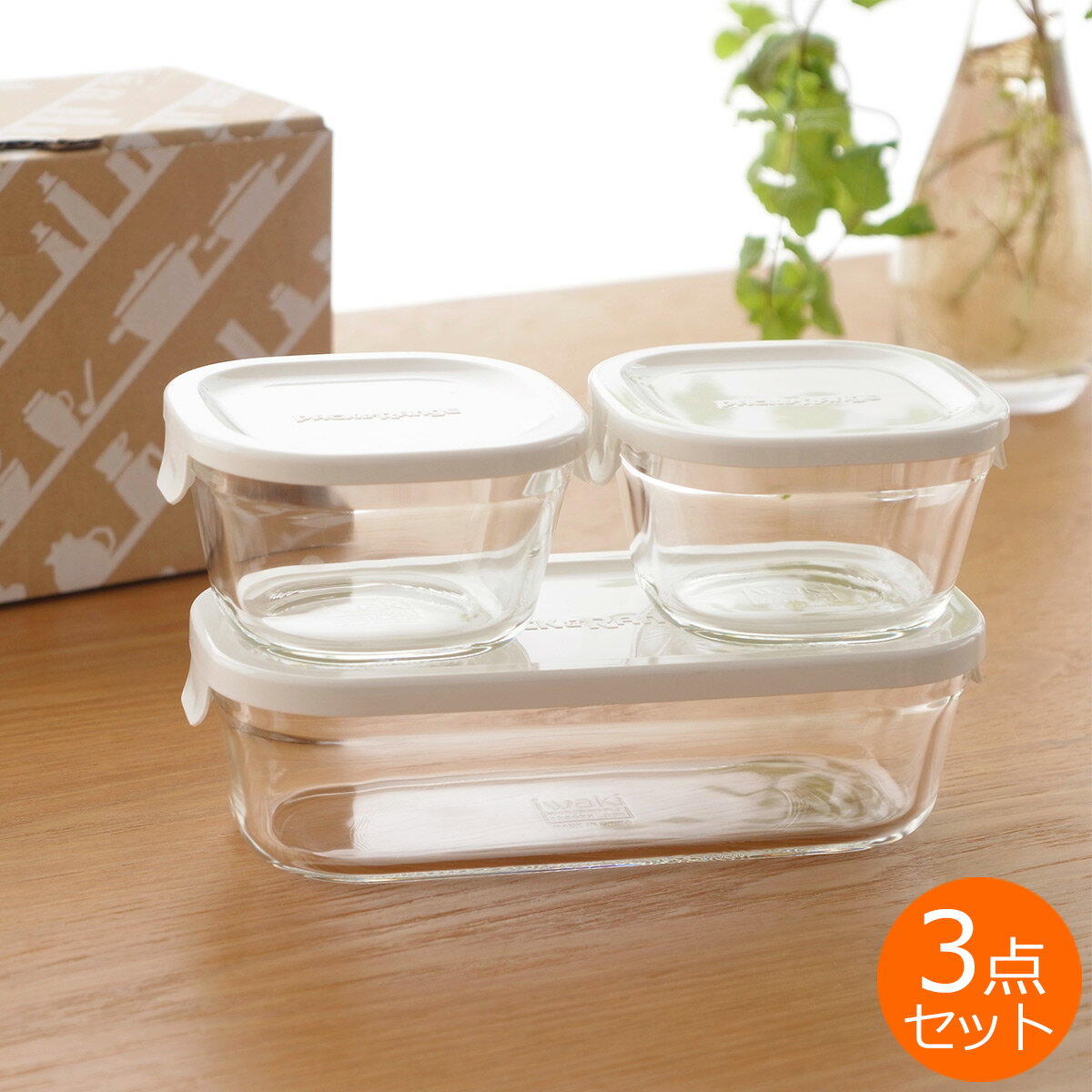 生活雑貨>キッチン雑貨>保存容器パック&レンジ 角型3点セット ホワイト プチ200ml X2 ハーフ500ml X1 365 methods iwaki/イワキ作り置きに大人気のiwaki パック&レンジ 角型3点セット (フタ:不透明ホワイト)。iwaki/イワキ商品コード(JAN・EAN・UPC):4905284159238メーカー型番:PCY-PRN-3WPCYPRN3W<特長>●保存容器であり、テーブルを彩る器にもなり、調理道具にもなる、1つで3役こなすキッチン容器の優れもの。●お料理好きなあの人に贈りたい、使いやすいギフトセット 角型3点セット(ハーフx1、プチ 200mlx2)です。●フタの色は不透明ホワイトです。●冷蔵、冷凍保存ができ、フタをしたままレンジ加熱OK、フタを外せばオーブンも使用可。●ラップ不要で経済的、そのままテーブルに出せるデザインなので洗い物も減らせます。●だれかに見せたくなる常備菜、作り置きの定番容器です。<仕様>◆パッケージ:ギフトボックス◆重量:約800g◆セット内容: [プチ] 入り数:2個 容量:200ml サイズ:9.2x9.3x5.4cm 重量:170g [ハーフ] 入り数:1個 容量:500ml サイズ:18.6x9.3x5.5cm 重量:360g◆素材: [本体]耐熱ガラス(耐熱温度差120℃) [フタ]ポリプロピレン(耐熱温度140℃)◆耐熱温度:ポリプロピレン約140℃◆仕様: 電子レンジ対応(フタをしたままOK) オーブン対応(フタは不可) 冷凍庫使用OK 食洗機OK※フタは密閉式ではありません。◆原産国:タイ・中国作り置きに大人気のiwaki パック&レンジ 角型3点セット (フタ:不透明ホワイト)。