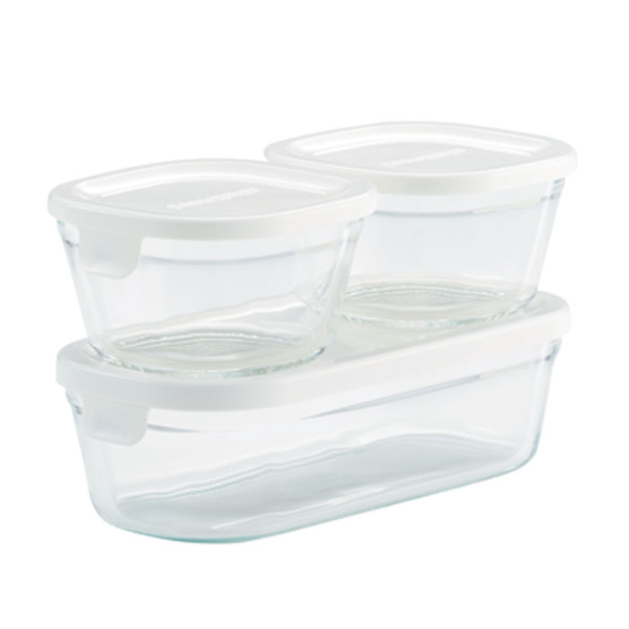 iwakiイワキパック&レンジ角型3点セット ホワイト 満水容量・0.2L、0.5L 耐熱ガラス