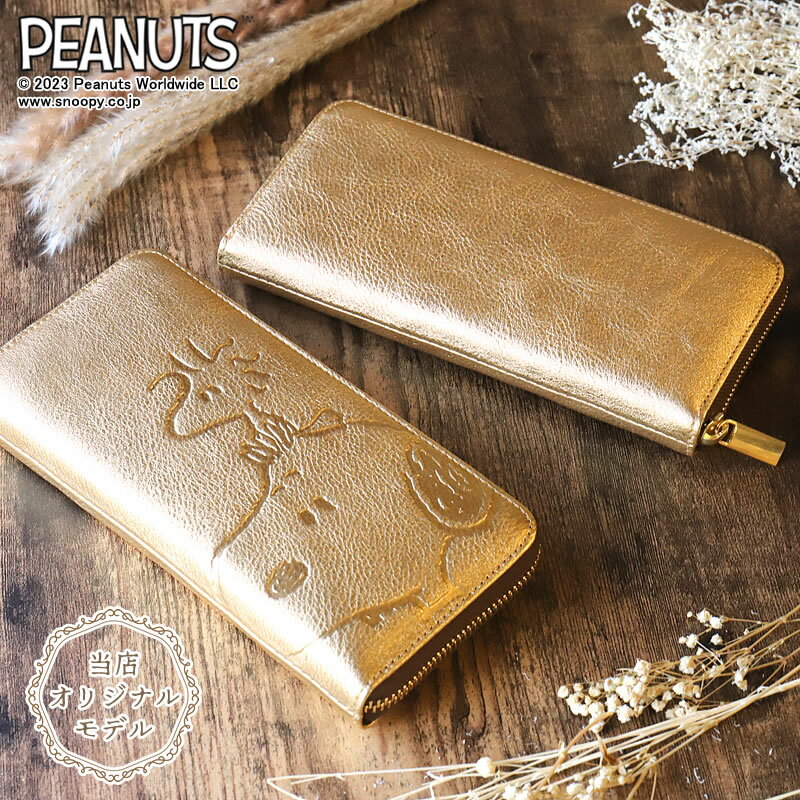 財布 レディース スヌーピー グッズ 当店 オリジナルモデル ゴールド 金色 風水 金運 ラウンドファスナー長財布 PEANUTS SNOOPY 長財布 サイフ 本革 レザー 革財布 大容量 ピーナッツ ピーナツ ブランド レディース メンズ プレゼント ギフト かわいい おしゃれ WM-SP1