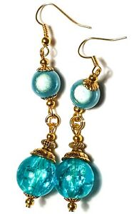 【送料無料】ジュエリー・アクセサリー ロングゴールデンターコイズキャットアイイヤーズドロップペンダンツガラスパールペルセボボlong dore turquoise chat eye oreilles goutte pendantes verre perles perce bobo