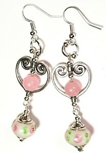 【送料無料】ジュエリー・アクセサリー ビッグシルバーローズハートイヤーズドロップペンダントガラスパールペルセビッグシックgrand argent rose coeur oreilles goutte pendantes verre perles perce gros chic