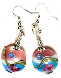 【送料無料】ジュエリー・アクセサリー ラージシルバーピンクターコイズファンタジーイヤーグラスフラワーパールパーセボボlarge argent rose turquoise fantaisie oreille verre fleur perle perce bobo
