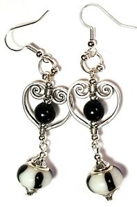 【送料無料】ジュエリー・アクセサリー シルバーブラックホワイトイヤーズパールガラスハンギングハートペルセtres longue argent noir blanc oreilles verre perle goutte pendantes coeur perce